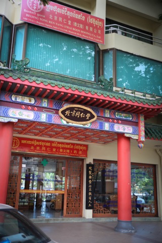 オルセイ市場近くで繁盛する漢方問屋、生薬を多用するカンボジア土着の民間医。古から中華系が幅を利かせるカンボジアでは、(民間レベルでは)日本以上に漢方志向が根強いとされています。