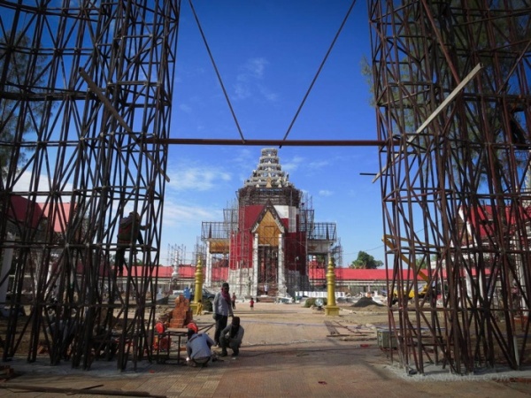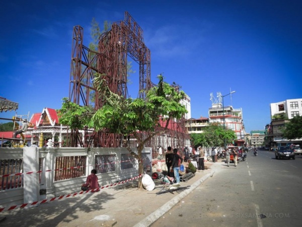 シハヌーク前国王死去から約三ヶ月。今年二月初旬に予定されている火葬の儀式を控え、予定地とされた国立博物館前広場は全面立入禁止。約400名の人足が連日昼夜ぶっ通しで、この国の常識ではありえない突貫工事を進めています。なんてったって、総工費500万ドルですから!