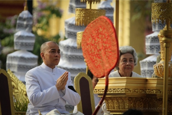 終始、憔悴しきった表情のシハモニ国王。新しい時代が始まったカンボジア。今年は何か良いことがありますように!