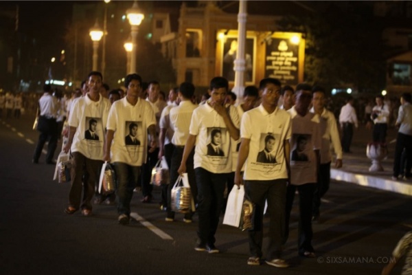 前国王が荼毘に付された四日、早朝から多くの市民が王宮前に足を運び、人並みは夜になっても途切れることなく、公式発表では約100万人が最後の別れを惜しんだとのことです。火葬場を見つめながら泣き崩れる人も珍しくありません。