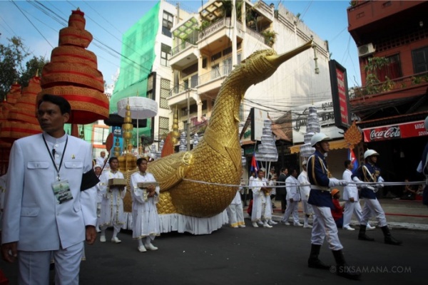 国葬には元宗主国のフランス代表をはじめ、隣国タイ、ベトナムの首相、日本からは秋篠宮様と、各国から多くの要人が参列。遺灰は王宮前のトンレサップ川に流され、一部は王宮内の納骨堂に収められました。