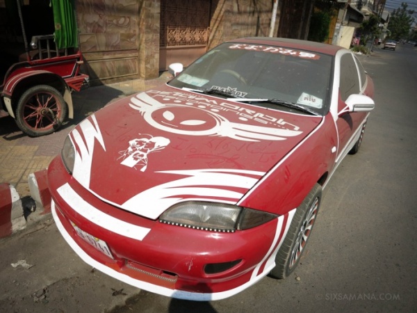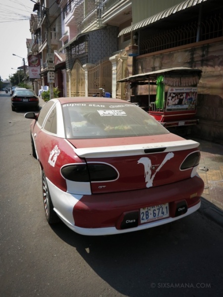 最後は番外編。シハヌークビルの住宅街に停まっていたBMW風の謎車。これはもう釣り目というより邪眼です。うっかり前に立ったら舌が出てきて喰われちゃいそう。でもどの車も個性的でステキです。そういうことにしておきましょう。