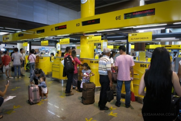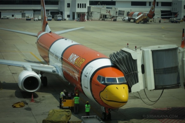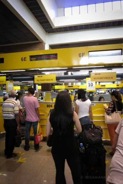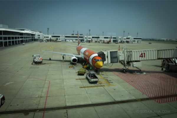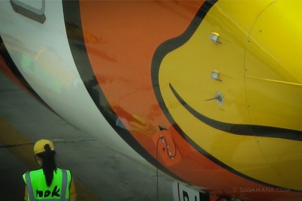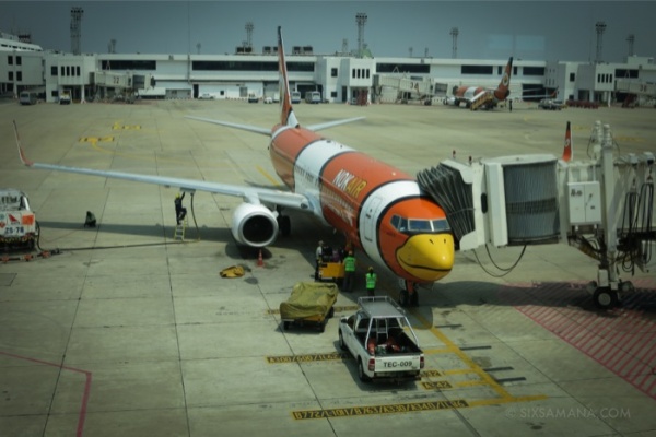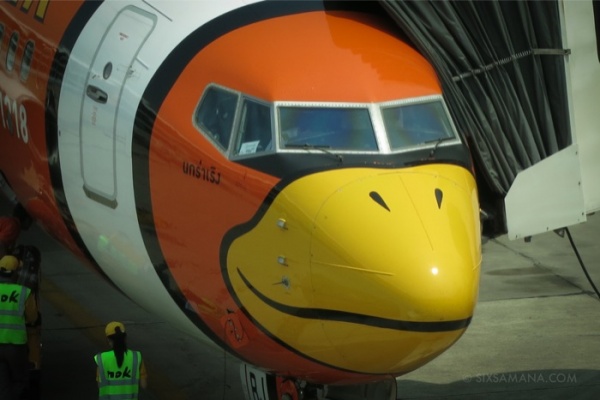 サイトを見比べた結果、乗り継ぎ時間その他でノックエアを選択。ウェブから簡単に予約できました。エアアジアが真っ赤ならノックエアは真っ黄色。原色ばりばりで全く落ち着きません。