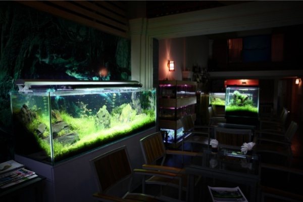 カフェだけではなく、並行して水槽のレンタルも行なっています。何かと手間がかかり、維持の面倒な熱帯魚水槽。知識があっても、カンボジアでは必要な消耗品も思うように入手できません。こちらでは水槽のレンタルから清掃・水替えなどのメンテナンスまで、総合的に引き受けてくれます。