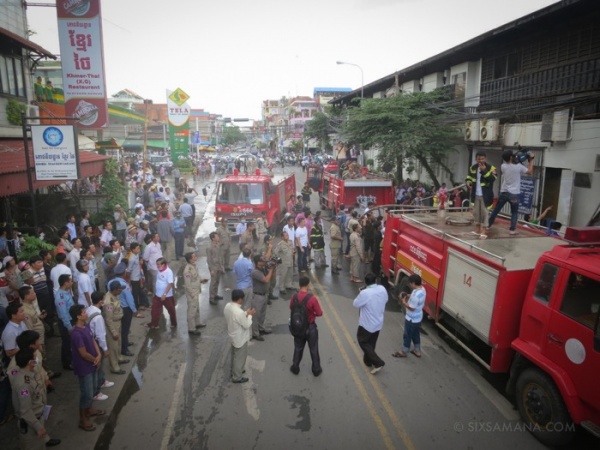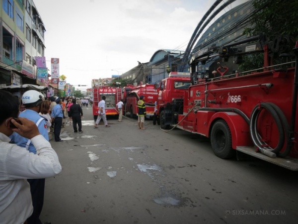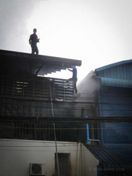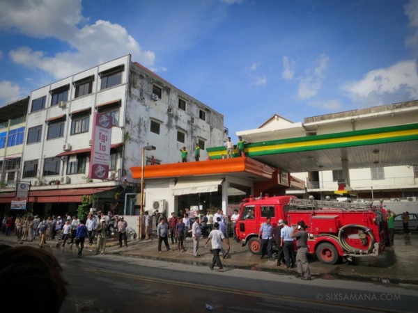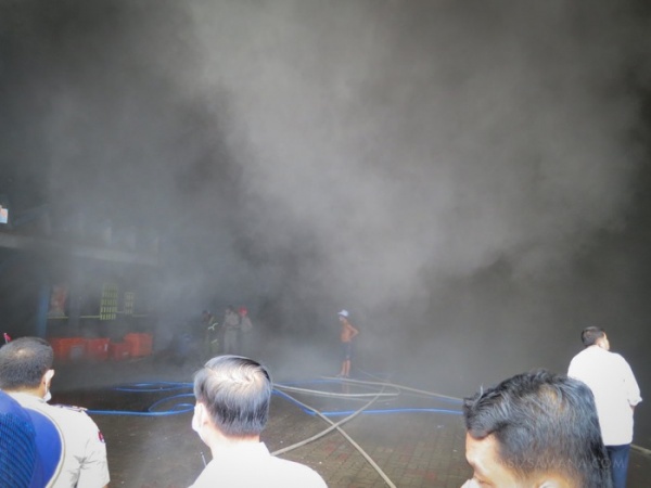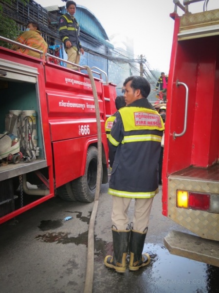 本日一番迷惑を被ったのは、隣にあるトンレバサックレストラン。営業中の出火で客を追い出し当日閉店。消火中も、従業員総出で厨房の油やプロパンガスを運び出していました。店内水びだし。鼻を突く刺激臭。