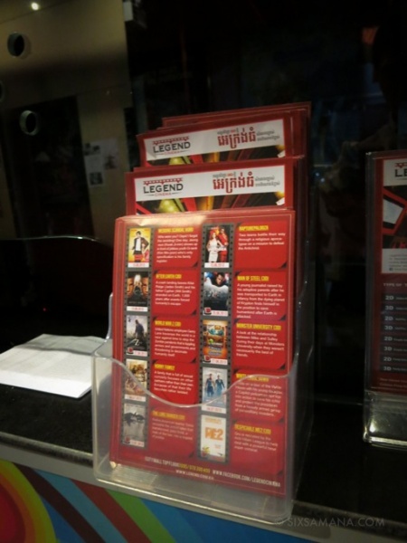 参考までに、カンボジアで正式なライセンスをとって洋画を流しているのは、こちらのレジェンドシネマとソリヤモールのシネプレックスだけです。