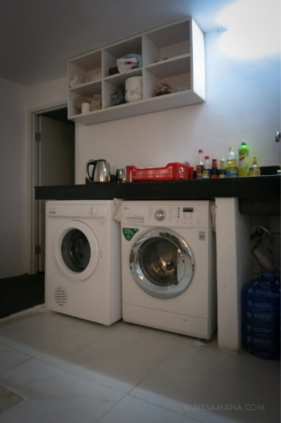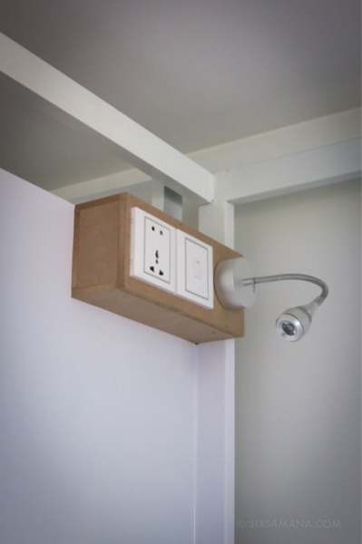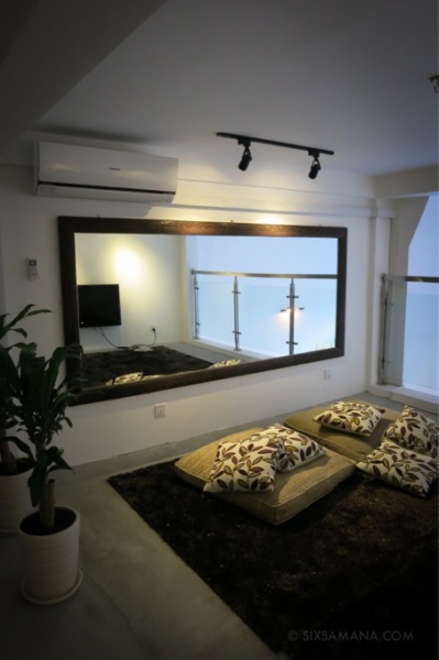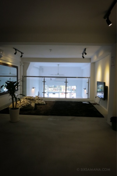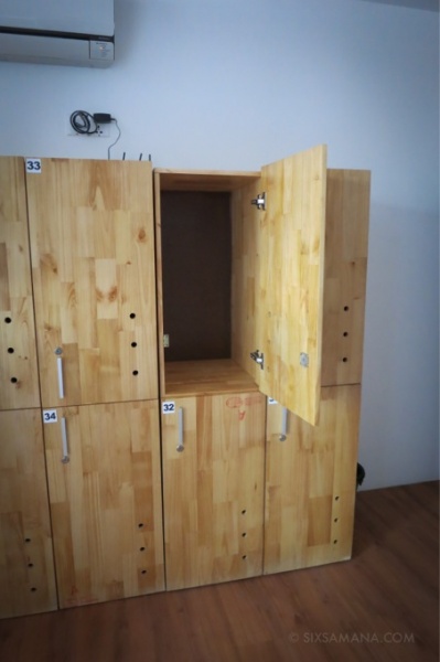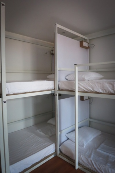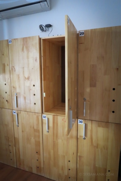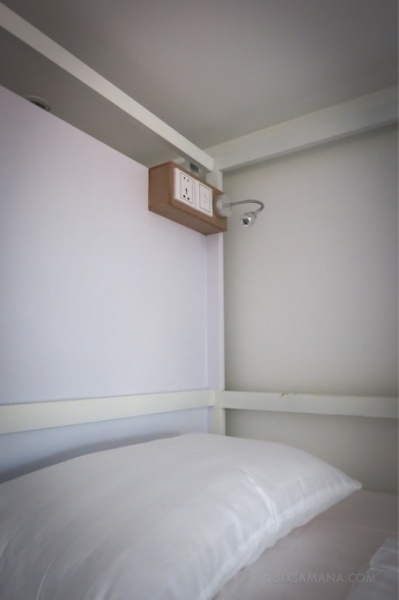 全室にノートパソコンも入れられる大きめのセーフティボックスがついています。各ベッドには読書灯とコンセントもあり、寝ながらパソコンというノマドライフも即・実現可能。キチネット(簡易台所)や洗濯機もあり、長居にも便利。中二階の休憩スペースには大画面テレビもありました。