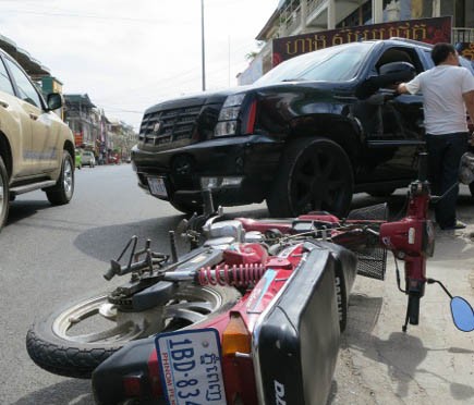 この日、プノンペン市内の裏路地で接触事故を起こした新興成金母子のキャデラック・エスカレード。相手は韓国製カブのバイクタクシー。どっちが悪いかは神様だけが知っている。という感じですが、戦う前から勝敗は決まったも同然でした。