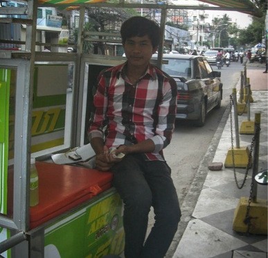 そのうえさらに、タイ・マレーシア製の健康食品・美容用品の輸入代理店ほか、最近始めたのが何を隠そう「牛乳の屋台売り」。オリジナルの手押し屋台を市内20~30箇所に設置し、タイ製の牛乳を販売中。社のイメージカラーに彩られた屋台は、車輪と箱にクーラーボックスをひとつ組み込んだだけという超シンプル構造。製造原価150ドル、店員人件費が月80ドルといったところでしょうか?