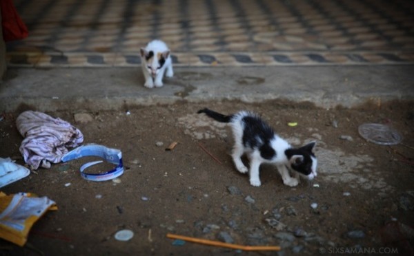 抱きしめたらぺったんこになってしまいそうな、産毛も初々しい子猫ちゃん。東京くんだりの猫を見慣れた私には、びっくりするくらい痩せ細ったカンボジアの猫ですが、この子たちも漏れなくガリガリです。お母さん、お乳出てるのかな……。