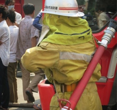 消防隊員のヘルメットにプリントされた「高砂市消防署」の文字にハッと何かを感じ、なんとなく周りの消防車を観察すると、それぞれ日本、韓国、中国のお古。中でも一番巨大で真新しい消防車は中国製。ほんのり胸が締め付けられます。