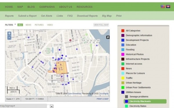 これに怒った欧米人が自身のブログ “Urban Voice Cambodia” で「今ココ停電してるぞコラ!マップ」を立ちあげると、賛同者が続々と無言でピンを立てています。