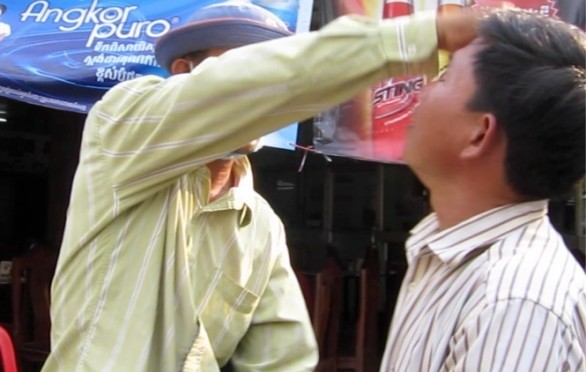 ブルーカラーの代名詞・バイクタクシーの運転手が1000リエル(25円)を巡り、殴る蹴る、舐め回すの大げんか! ブルーな世界ではこの種の決闘、もとい小競り合いと良くお目にかかります。