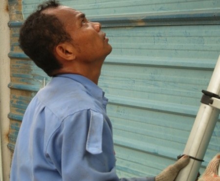 アパートの下には、社名の入った作業着のオヤジが二人いました。きちんと靴を履いていて、安心感が漂ってきます。