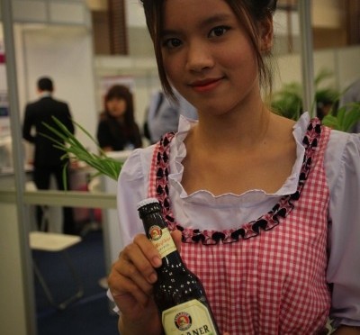 こちらのイベント、設計施工、セメント資材から内装、仕上げのIT環境までなんでもござれのごった煮イベントでありまして、会場の一角では、なぜかカンボジア初上陸というドイツビールの即売会まで行われていました。打ち上げ用にどうぞってか?