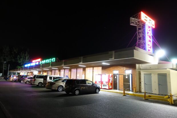 砂浜に面しただだっ広い駐車場。そこにぽつんと建つくすんだ箱型の建物。ギラギラ輝く古びたネオン。そこだけ切り取ったらアメリカのような景色。実際、開店当初はアメリカ人客ばかりだったそうだ。