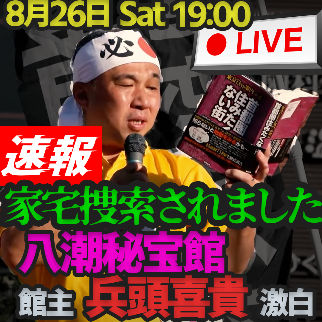 大変です! 警察から家宅捜索を受けたばかりの埼玉県・八潮秘宝館から緊急メンバーライブをすることになりました。激怒する兵頭館主。一体何を語るのだろうか? 土曜の夜。どうぞお付き合いください!